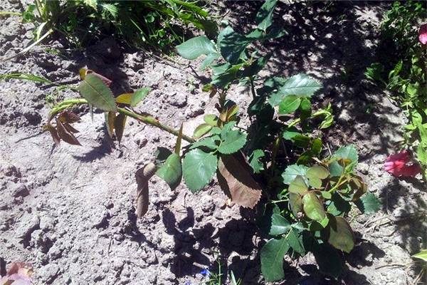 - there is too much sand and few nutrients in the soil where the rose bush is planted;