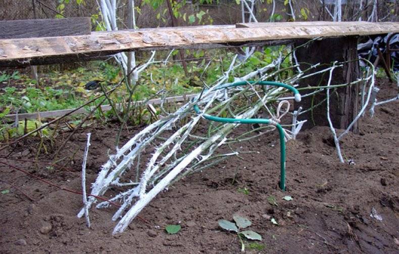 - Cuttings are buried almost completely in the ground, up to the first leaf, covered with paper bags and plastic bottles.