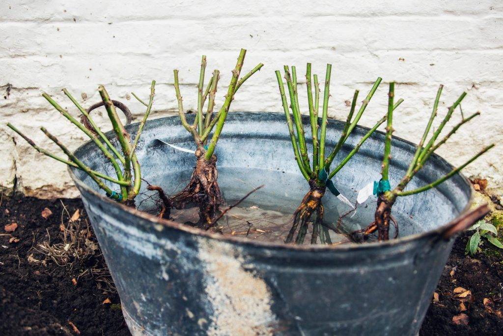 Before planting, the seedling is placed in a container with clay soil dissolved in warm water (for 15 minutes) and for 30 minutes. in a solution of potassium permanganate (to disinfect the roots).