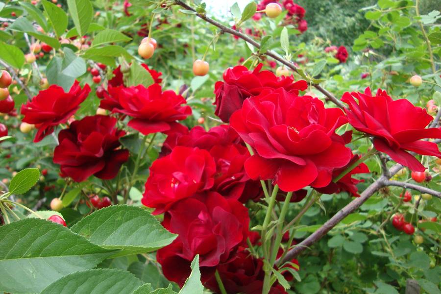 The Canadian rose Cuthbert Grant is characterized by abundant flowering in June. It then repeats in September. The plant has a strong aroma and light green foliage. It has a glossy texture and is resistant to black spot and powdery mildew. The variety has straight bushes 90-120 cm high. It is characterized by tough and thick shoots.