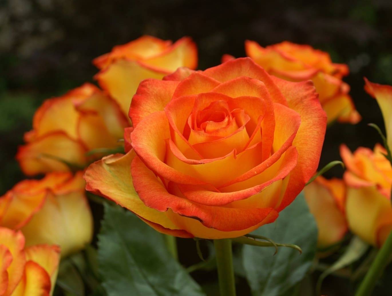 The rose was named High Magic for its magical coloration. A yellow-red gradient is poured over the petals, resembling a flame, hence its name dancing flame, or in another way dancing fire. Due to its bright orange hues, the flower is also called the Orange Magic rose (orange - English "orange").