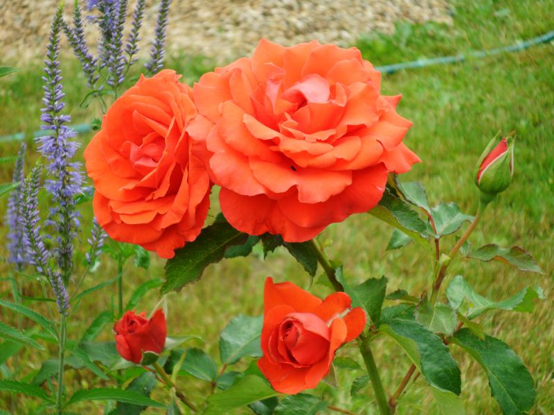 Rose Brilliant has an orange color with a purple-red tint. The buds surprise with their splendor, each of them consists of 35-40 petals, the flower reaches 10 cm in diameter. The petals are double. The bush itself is about 120-150 cm high with a pronounced dark green foliage will not leave indifferent any connoisseur of beauty.
