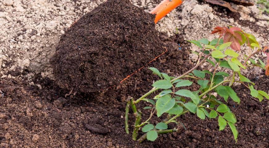 For the plant, you need to dig a hole 50 cm in size. A drainage layer 5-7 cm thick must be placed on the bottom. Then fill the hole with soil for roses. If the roots of the plant are weakened or damaged, they are pruned. This ensures the acceleration of their growth in the future.