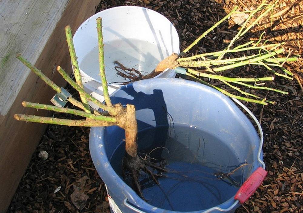 Shoots and root system are lightly pruned. The stems should not have flowers and leaves. The roots are dipped for 2-3 hours in a solution of a growth stimulator.