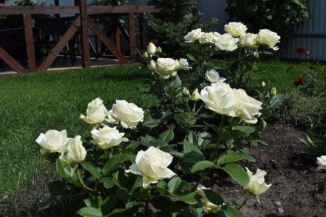 The main purpose of a rose on the site is to decorate it with your own flowers, and it is for this that it is planted. This variety begins to bloom in June and usually lasts more than three months.