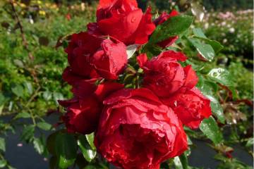 This variety belongs to a variety of rose bushes that are grown in garden plots. Its buds can be simple, double or semi-double. In diameter, they often reach 12 cm.