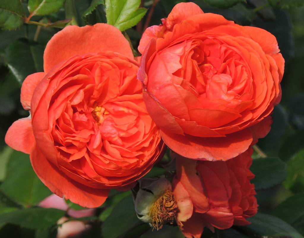 The Summer Song rose blooms for a very long time, spectacularly and brightly with beautiful brick-colored flowers, similar to the lush flowers of peonies. During flowering, the garden is filled with a wonderful aroma.