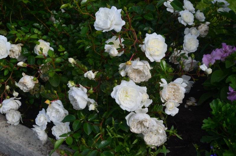 The flowering of this rose variety is beautiful, it is mesmerizing. Especially when several bushes are planted nearby, and they already occupy a large area. Snow-white flowers look very impressive on a green background. A rose can also be tied to a stem, and with proper care, a stem tree can be grown from it.