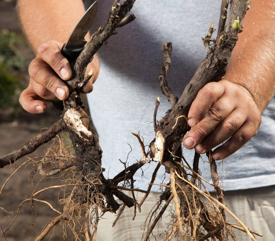 - The next evening, you should dig a bush and divide it into 2 or more parts with pruning shears, so that each division has a sufficient number of roots and at least 2 buds.