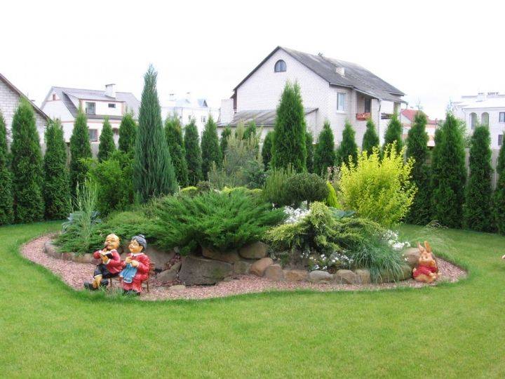 Wonderful decorative fences, compositions of shrubs and flowers with the participation of thuja can decorate any garden