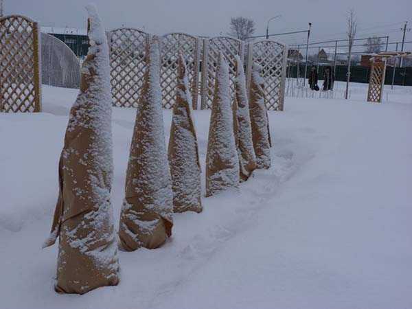 Mature shrubs need a secure frame for wintering. The main purpose of such structures is to keep the crown from snow, wind and ice. Broken branches not only spoil the look, they are a supply of food and moisture. This can affect the condition of the tree after winter.