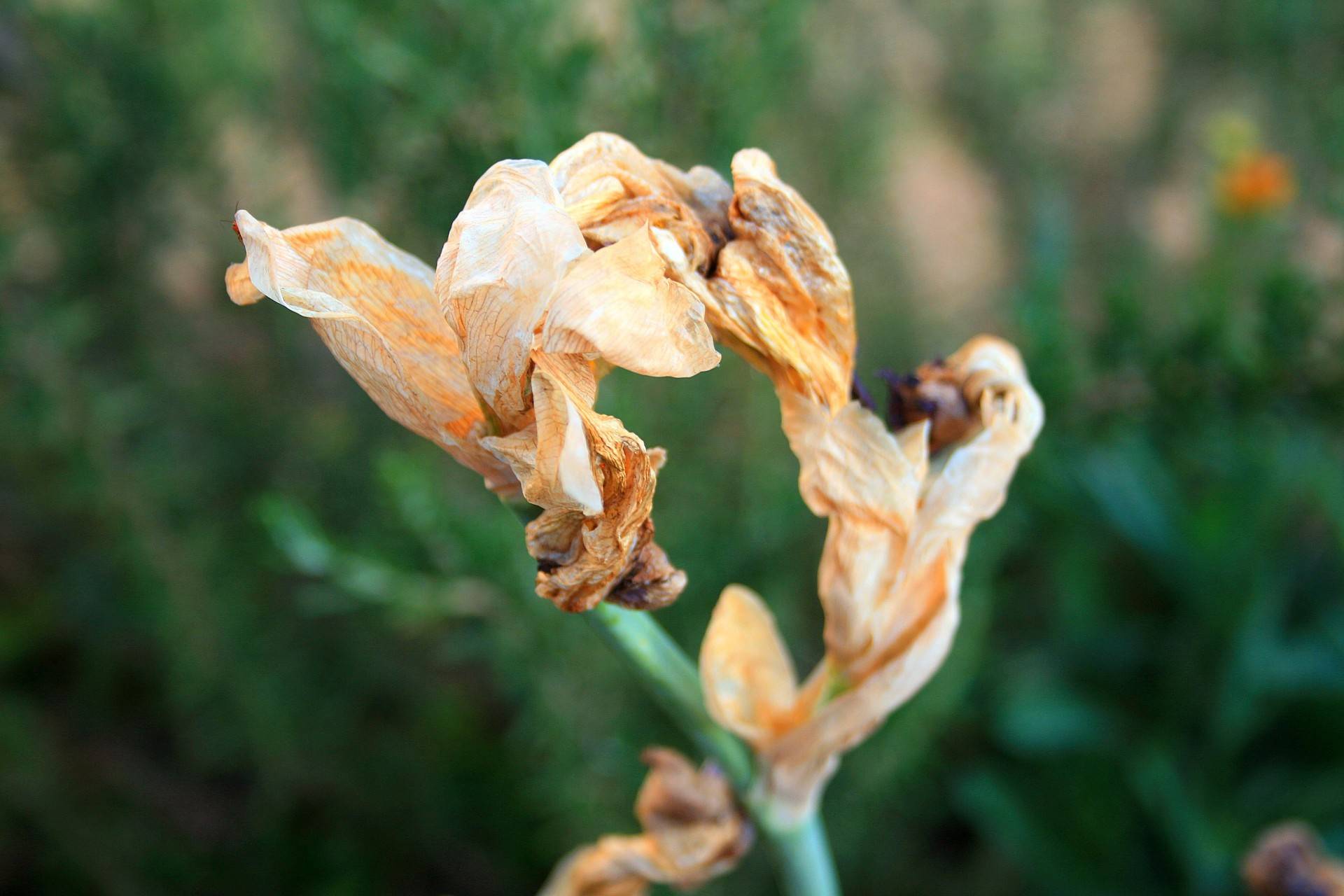 Lush and vibrant flowering in various varieties, for example, in the bearded, can last up to 3 weeks in a row. After that, dried stems of flowers remain sticking out of the rosettes of the leaves, which must be removed. This is done not only for decorative purposes, but also to prevent the appearance of diseases.