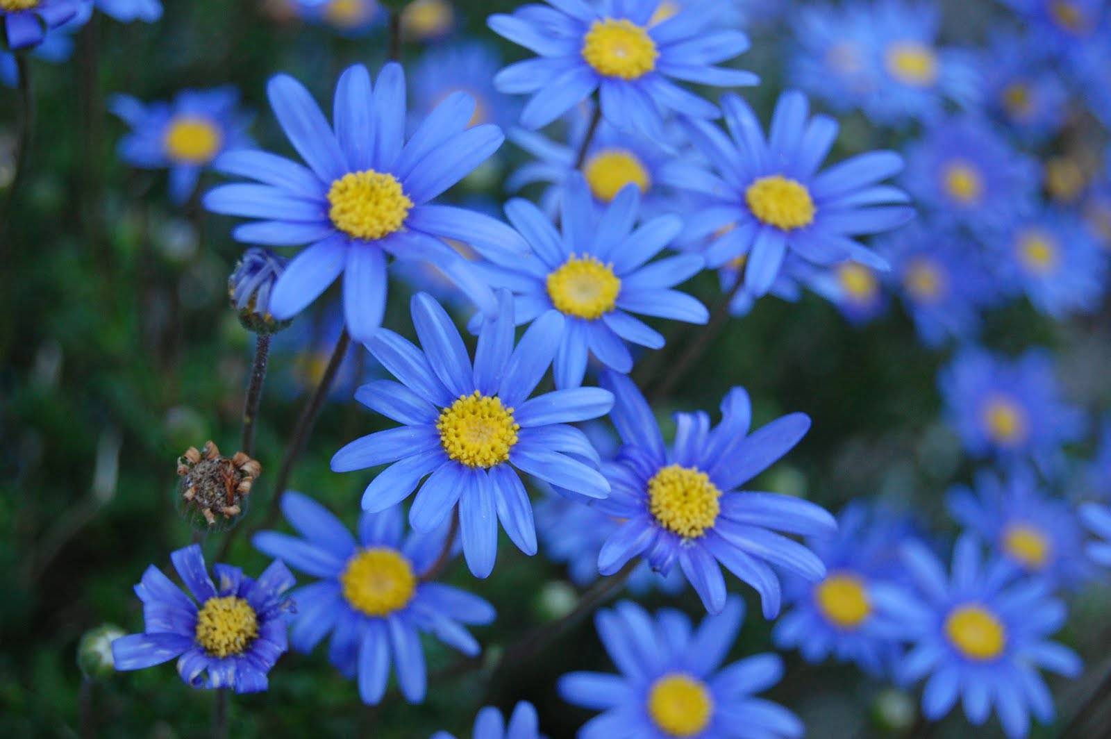 Another very attractive species is perennial blue chamomile. Also called Felicia, she came to Russia from South Africa. The plant is characterized by an unusual color of petals, it can be pale turquoise, sky blue, deep blue, often purple veins are visible on the petals. Bushes are low, up to 50 cm, small leaves are hidden under large inflorescences. The plant is demanding to care for: once every three weeks it should be fed, and as the soil dries up, water it.