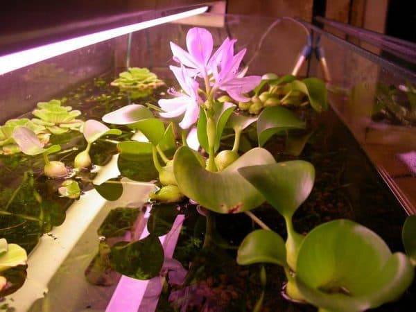 When growing hyacinth for an aquarium, there are additional features. Under these conditions, it is easier to provide suitable temperature conditions. However, the volume of the aquarium should be large enough for the hyacinth to have enough room for full development. It is also important to provide high quality and abundant lighting for the plant.