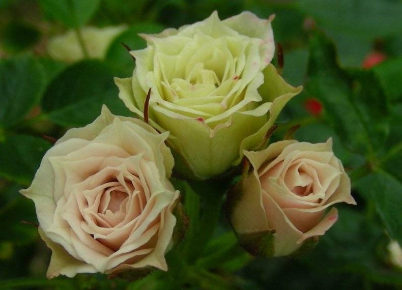 Rose Green Ice became so called due to the shade of the buds, reminiscent of cold ice. Its flowers are small, and the bush itself grows up to 50 cm in height. Therefore, it is often used as a green border. Buds in the process of blooming acquire a white-green color. Rose Green Ice has a subtle pleasant aroma.