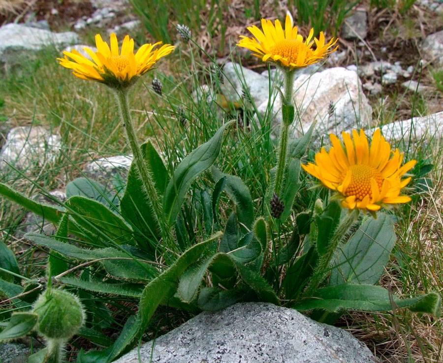 The habitat is high-mountain alpine meadows. Plant height up to 30 cm. Serrated foliage is covered with cilia and thick hair. A bright yellow basket is located on the pubescent top. The diameter of the flowers is 3-6 cm.