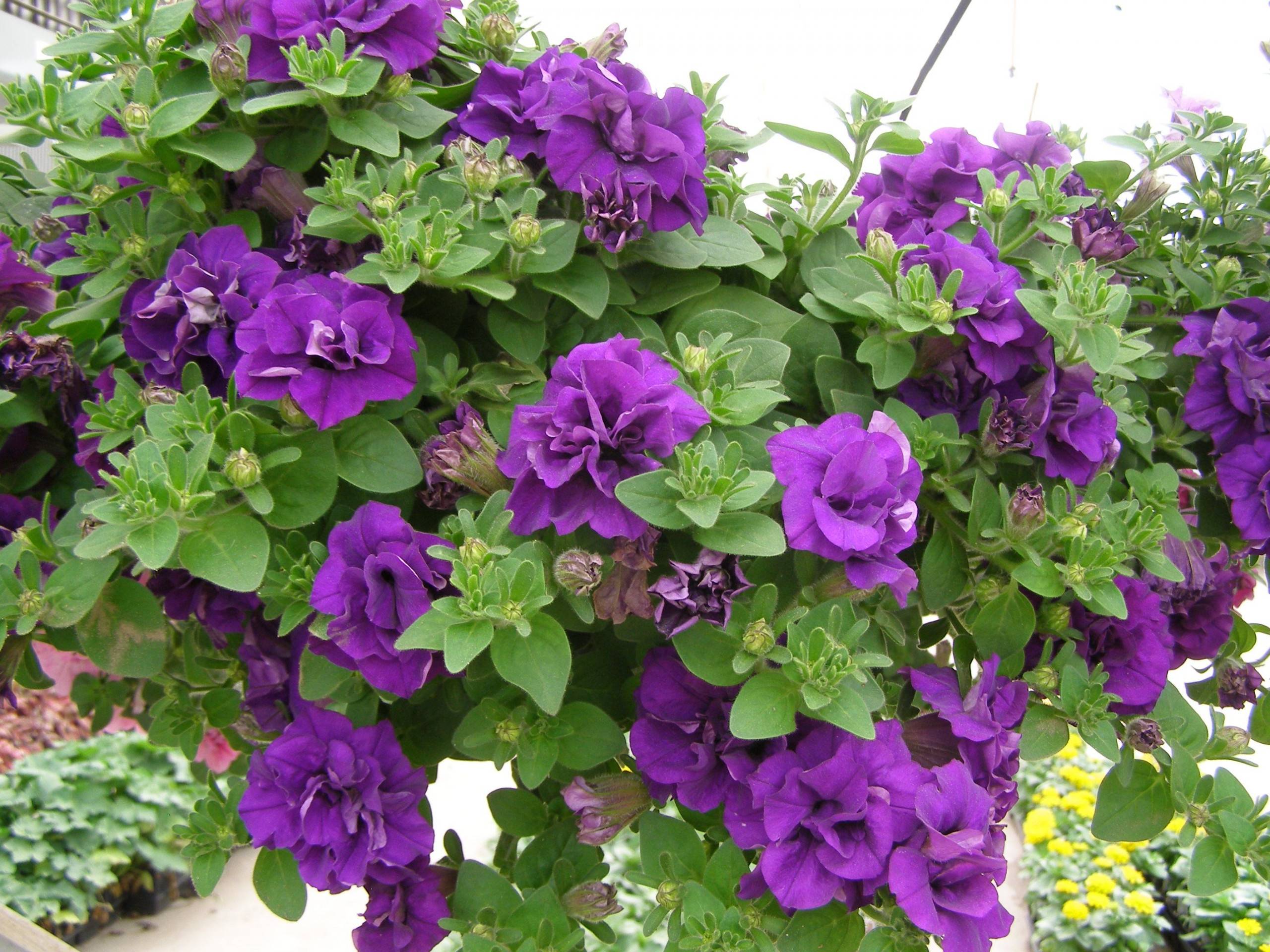 Esta especie crece naturalmente en el continente americano en la parte tropical del mismo.La petunia terry ampelous es un pequeño arbusto con enredaderas de 50-70 cm de largo, con placas de hojas ovaladas dispuestas en pares en los brotes y pintadas en un tono verde brillante. Tanto las ramas como el follaje del arbusto tienen una pubescencia notable, lo que le da a la variedad un aspecto hermoso.