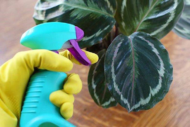 La respuesta a la pregunta de por qué las puntas de las hojas del arrurruz se secan siempre será: sequedad excesiva del aire. Durante todo el año, la flor se rocía desde una botella rociadora con agua blanda sedimentada. Además, puede instalar un palet con arcilla expandida húmeda junto a la planta.