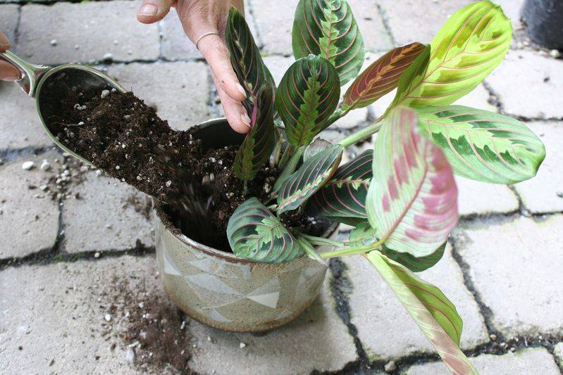 Una flor adulta se trasplanta una vez cada 2 años con el inicio del calor primaveral. Antes del trasplante, se realiza la poda de las verduras secas para garantizar un mejor desarrollo de la planta. El recipiente para arrurruz se toma bajo y ancho, un poco más grande que el anterior. El drenaje debe verterse en el fondo.