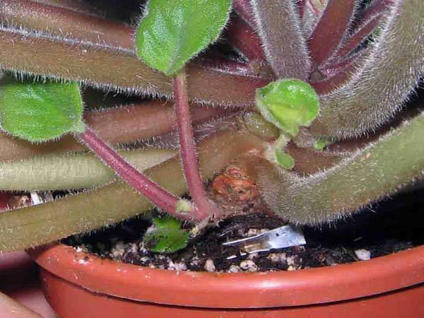 Al enraizar, la creciente roseta violeta se alimenta de clorofila. Por tanto, es necesario asegurar la iluminación de la hoja.