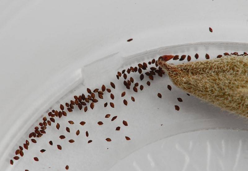 Saintpaulia-quimera da una descendencia de especie en toda regla solo con la cría de semillas. Necesita plantar semillas de una caja de semillas maduras y secas.