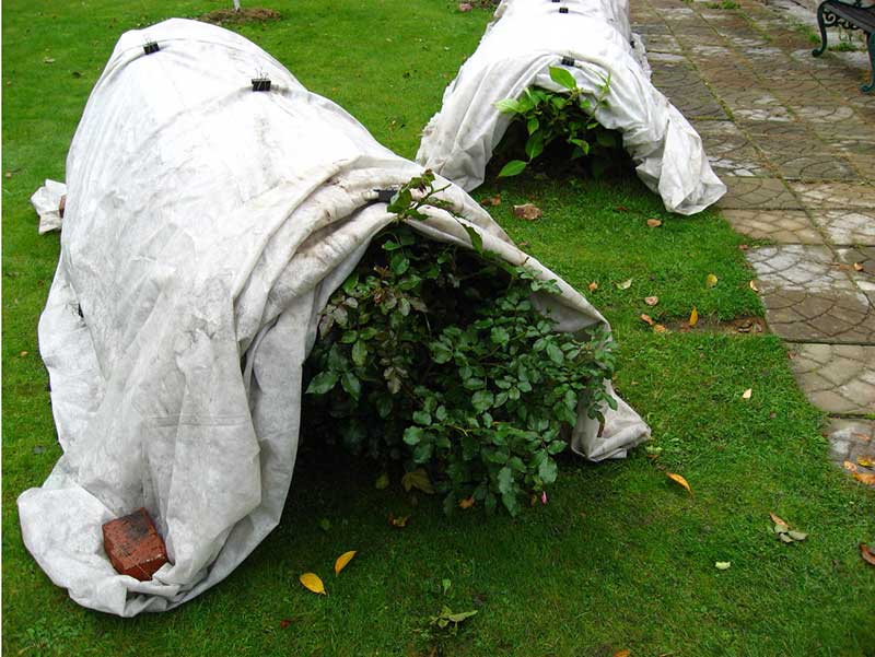 - Las ramas de abeto se colocan nuevamente en la parte superior de la pestaña y luego se cubren con material no tejido.