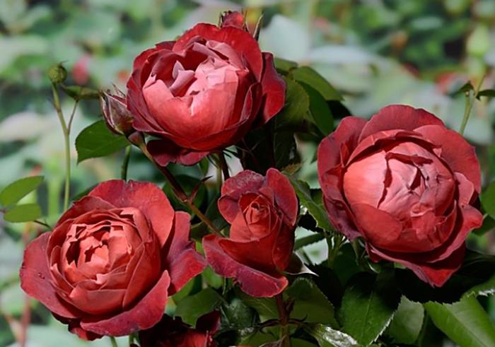 Los cogollos grandes se asemejan al té híbrido, floribunda o rosas antiguas. Dan una segunda oleada de floración.