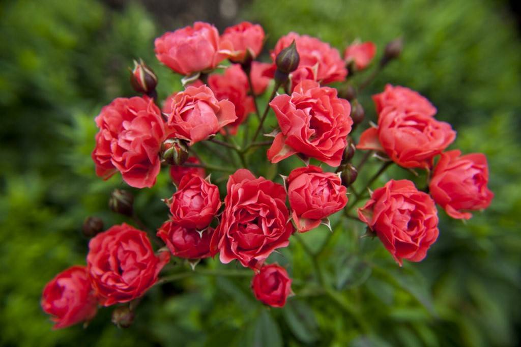 - el pequeño arbusto de rosas polyanthus está sembrado de inflorescencias durante toda la temporada. El único inconveniente de las flores es la falta de aroma;