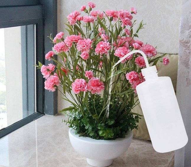 Les soins à domicile pour un œillet de chambre comprennent un pansement supérieur. La procédure stimule la croissance et la floraison. Ils sont nourris avec des engrais complexes avec une quantité accrue de potassium.