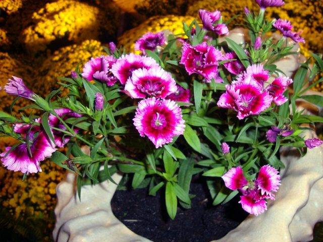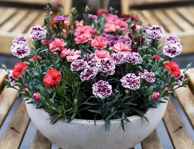 L'œillet fait maison dans un pot ne se sent pas pire du tout que dans un parterre de fleurs ou dans une serre. Elle décore les appuis de fenêtre et les balcons, a fière allure dans les pots et les pots. Ne nécessite pas de conditions de soins particulières. Avec une plantation et une attention appropriées, il plaît à la croissance et à la floraison.