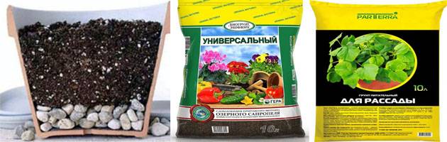 Il doit y avoir des trous au fond du récipient et du drainage, pour lesquels de l'argile expansée, des cailloux et du gravier sont utilisés. Les nouveaux pots (contenants) sont lavés avec du savon à lessive et désinfectés avec de la blancheur, de l'eau bouillante ou du peroxyde.
