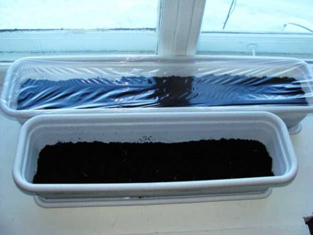 Après la plantation, les graines sont humidifiées, le récipient est recouvert de verre (polyéthylène) et envoyé dans un coin sombre et chaud, où il est conservé jusqu'à la germination. La température ambiante est maintenue à + 20-22 degrés.
