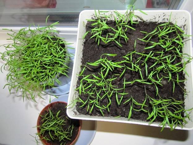 Les pousses de plantation émergentes sont éclaircies, laissant 3 cm entre les pousses. Le verre est retiré. Le conteneur est installé sur le rebord de la fenêtre.