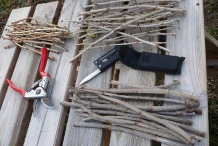 Pour couper les boutures, choisissez des buissons épaissis sains âgés de 3 à 5 ans, qui sont au début de la saison de croissance. Les pousses sont coupées dans des plantes, coupées en morceaux jusqu'à 15 cm de long. La coupe inférieure doit être oblique, faites-la à une distance de 2,5 cm du rein inférieur. La coupe supérieure est droite - 1,5 cm au-dessus du rein.