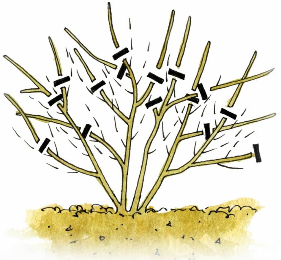 Dopo la fioritura, viene eseguita la potatura principale. Il suo obiettivo è la qualità della fioritura nella prossima stagione. Inoltre, comporta la pulizia della boscaglia da tutti i germogli scadenti, prevenendo malattie e parassiti.