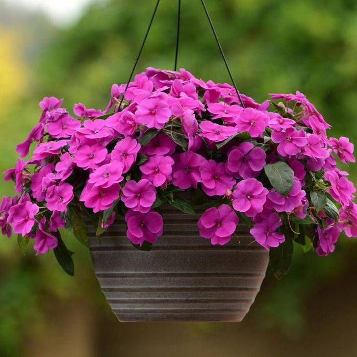 Impatiens ampelous, o balsamo sospeso, si distingue per la cura semplice e la bella fioritura. Sembra impressionante sia nell'appartamento che in giardino.