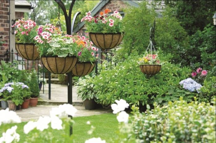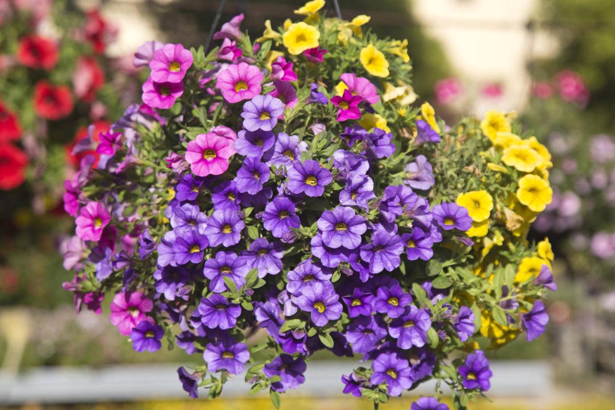 Sia le annuali in fiore che le piante perenni sono adatte per la coltivazione in cesti appesi. I fiori devono essere forniti di luce, umidità, fertilizzante sufficienti e periodicamente tagliarli e pizzicarli.