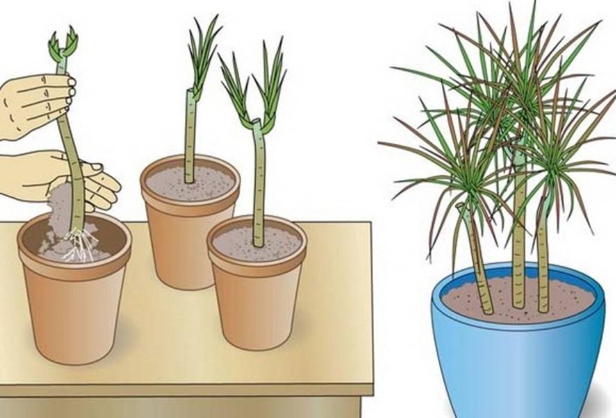 Una dracaena adulta, che ha perso il suo aspetto attraente, può essere aggiornata coltivando una pianta più giovane da essa o allevandone diverse nuove. Per questo: