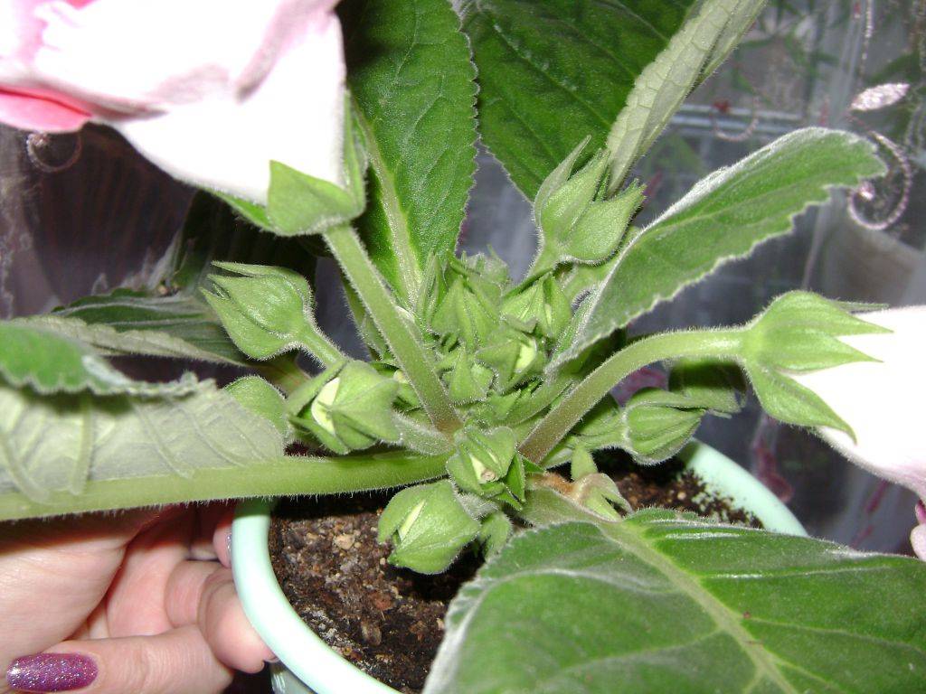 Se la fioritura è abbondante, potrebbero non esserci abbastanza nutrienti per aprire i boccioli. È importante ricordare che la gloxinia stessa non fiorirà rigogliosamente; è necessaria un'alimentazione aggiuntiva. Inoltre, i parassiti possono essere coinvolti nell'ammorbidire le gemme: acari o tripidi. Da loro, è necessario lavare la pianta con acqua saponosa, rimuovendo le aree danneggiate. Bassa umidità e illuminazione instabile sono inaccettabili.