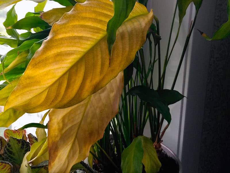 L'aria secca è un problema invernale. Essiccato dai termosifoni del riscaldamento centralizzato, attira l'umidità dalle foglie. Le piante con foglie sottili e delicate sono le prime a soffrire. Diventano gialli e si seccano.