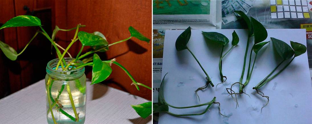 Questa riproduzione della pianta è la più semplice. Le radici aeree dello scindapsus vengono fissate al terreno, quindi le rosette vengono separate.