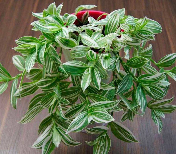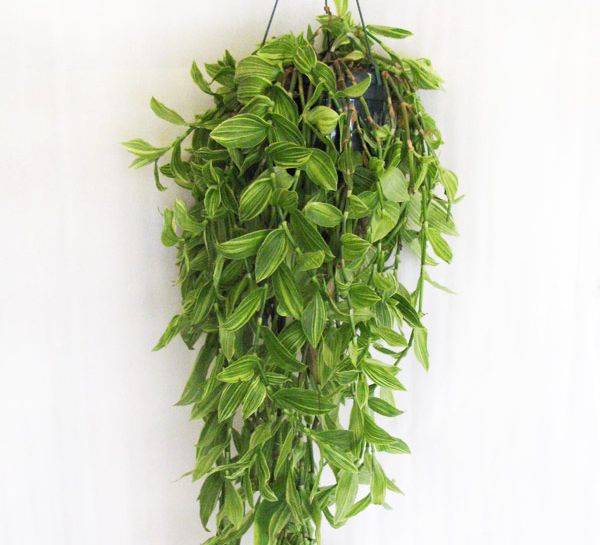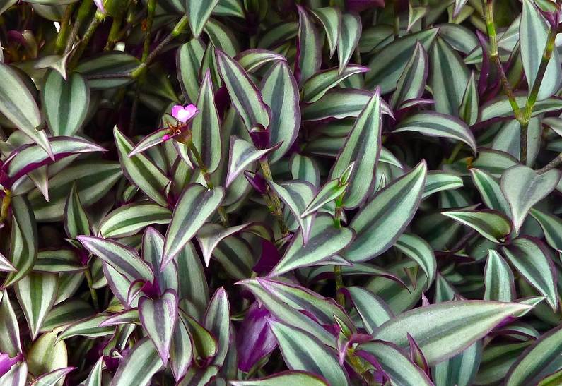 Tradescantia, che è facile da mantenere a casa, cresce rapidamente e non ha pretese di illuminazione. Questo vale per le varietà con foglie verdi senza strisce.