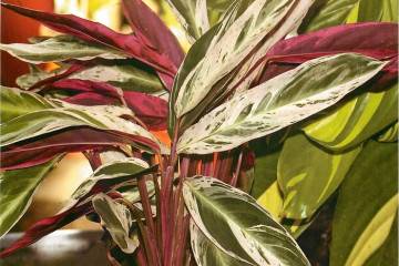 Un arbusto sempreverde che forma rosette frondose all'estremità dei germogli. I piatti fogliari hanno strisce rosa o bianche lungo i bordi.