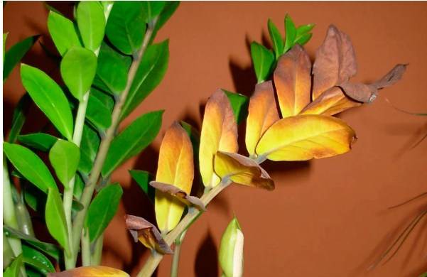 Anche se la zamioculca è adeguatamente curata a casa, diventa gialla a causa dell'elevata umidità o, al contrario, dell'aria secca interna. Nel primo caso, è necessario spostare il vaso in un ambiente più accettabile, preferibilmente in una stanza con poche altre piante. Un albero del dollaro che cresce in casa con aria secca dovrebbe essere spruzzato con un flacone spray.