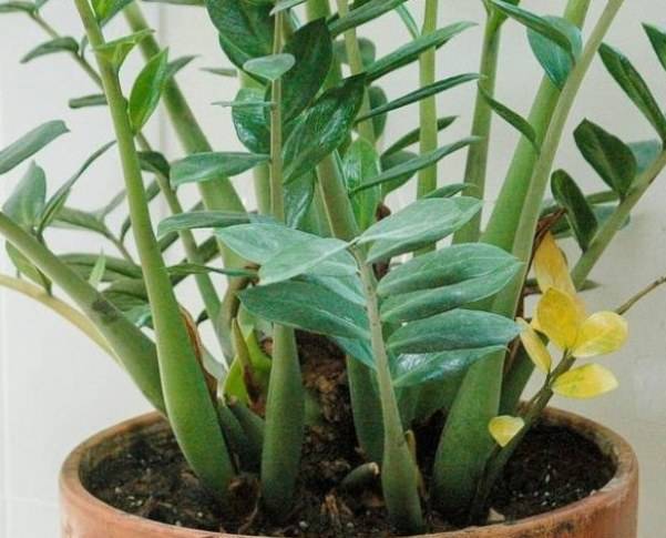 L'albero del dollaro è lo stesso zamioculcas, le sue foglie ingialliscono per vari motivi. Prima di iniziare le misure di salvataggio, devi scoprire perché il fogliame sta appassendo. Questo può essere un'irrigazione troppo abbondante dell'albero, un'invasione di parassiti, malattie, alta umidità, scottature solari.