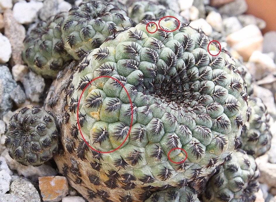 Occasionalmente una cocciniglia attacca un cactus. Questo parassita è in grado di aspirare tutto il succo dagli steli in breve tempo. Il cactus potrebbe morire. La presenza del verme può essere compresa dalla rete leggera. La pianta può essere salvata solo mediante trattamento con insetticidi.