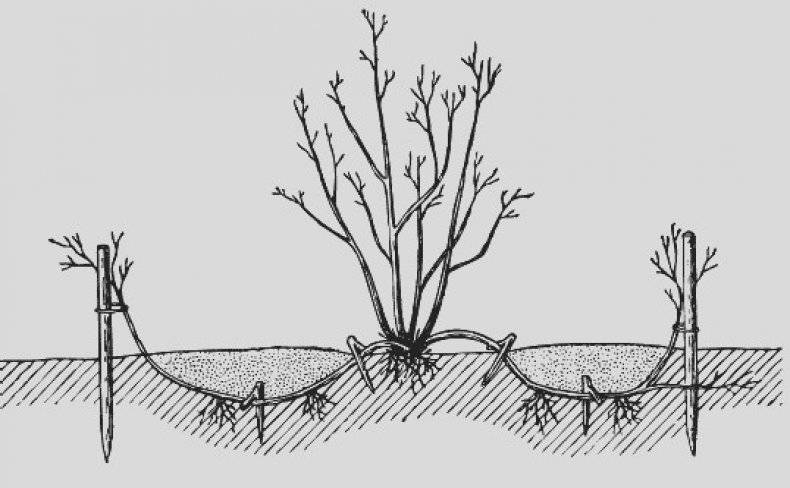 Per la riproduzione in questo modo, un piccolo solco viene scavato vicino al cespuglio. Vi è posta una via di fuga, fissata su di essa. Durante la stagione, il luogo di contatto viene irrigato. Quando si sviluppano nuovi cespugli, vengono separati dalla pianta madre, trapiantati.
