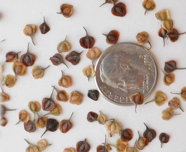 La germinazione dei semi è molto bassa - non più del 25%. Inoltre, la capacità germinativa del seme rimane non più di 1 anno. Per ottenere germogli forti, tutti i semi devono essere stratificati. Per fare questo, vengono mescolati con torba o sabbia, annaffiati e aspettati che tutti i semi si gonfino bene. Quindi il tutto viene miscelato con la stessa quantità di substrato in volume e posto in frigorifero.