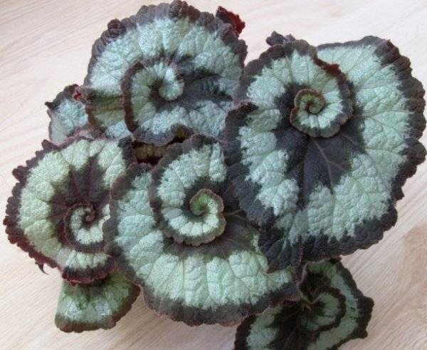 Tra le varietà di varietà di begonie reali, le begonie più apprezzate e diffuse sono Escargot, Griffin, Dark Mambo e Mary Christmas.