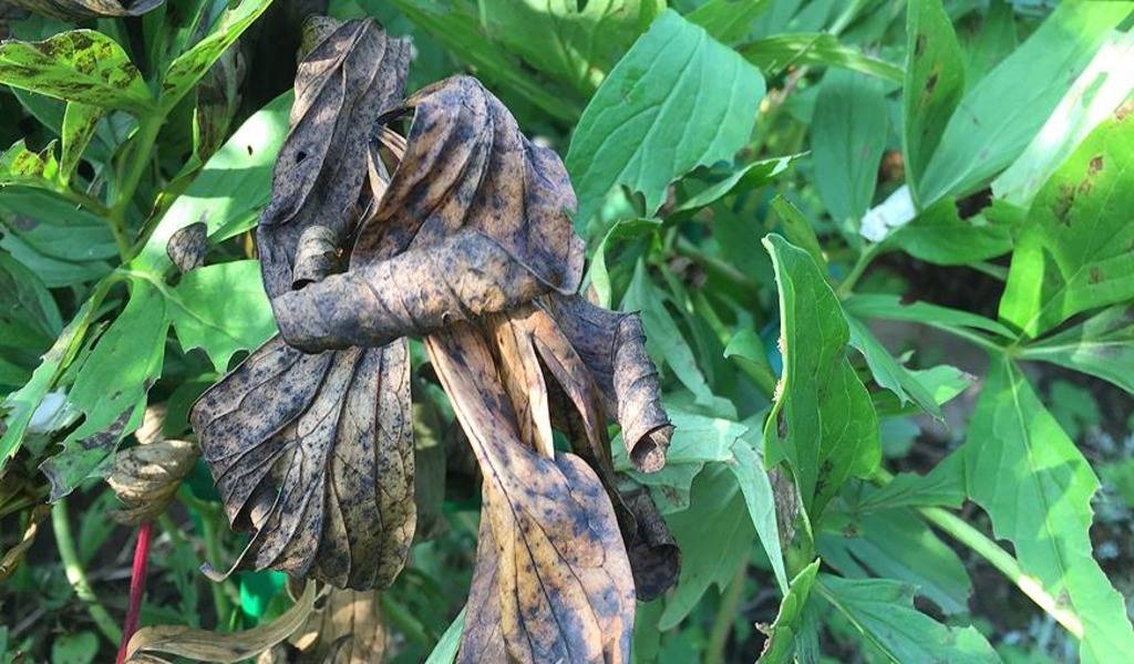 Quando la malattia si diffonde notevolmente, la peonia appassisce e muore.